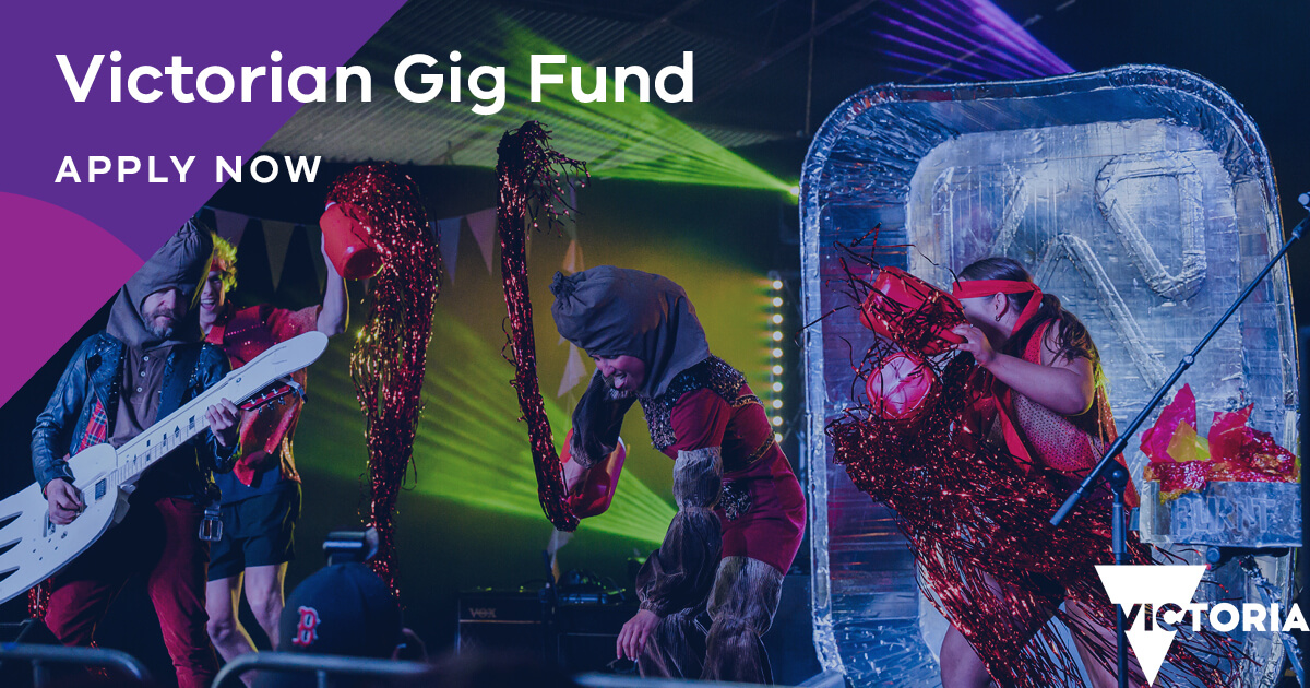 Music Victoria is delivering the Victorian Gig Fund as part of the Victorian Government’s 10,000 Gigs initiative.