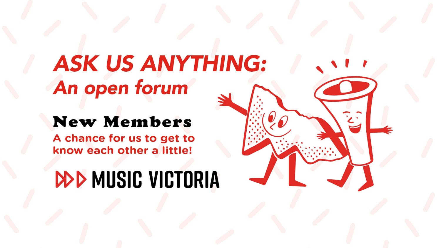Thank you to all our new members that have signed up this month for free! We’re hosting a Q&A session for all of our new members to get to know us a little better. We’ll have a bunch of our friends in the industry on the chat, as well as some Music Vic staff and board members. Ask us anything you’d like to know about the work we do, or how you can get the most out of your new membership. We’d also like to hear what you would like to see from us, we’re all ears.