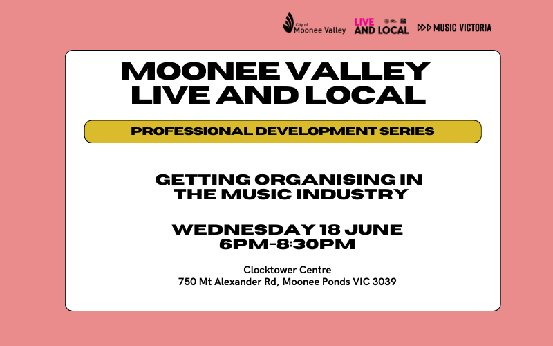 These events are ticketed events open to both Music Victoria Members and the public. With a paid option for the public, Music Victoria Essential Members and above will gain free access to the Playbook Series. While Basic Members can access a 50% discount on each workshop. Learn more about the Music Victoria Membership offering and sign up now.