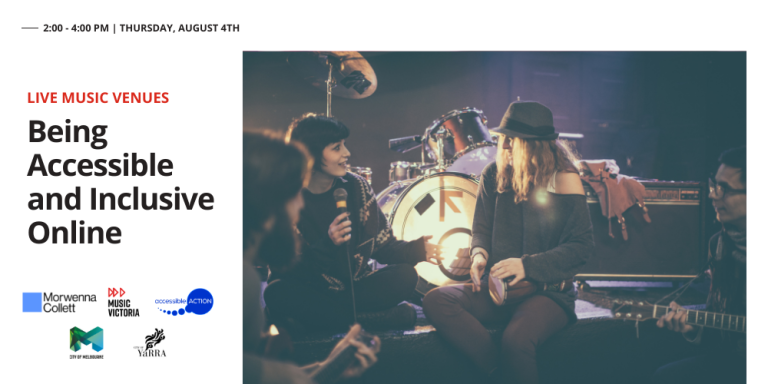 As part of the Music Venues Project, Music Victoria is providing free training in online accessibility to venues and other music industry stakeholders to show you how to make your digital content, from your website to your social media channels, accessible to everyone in the community.