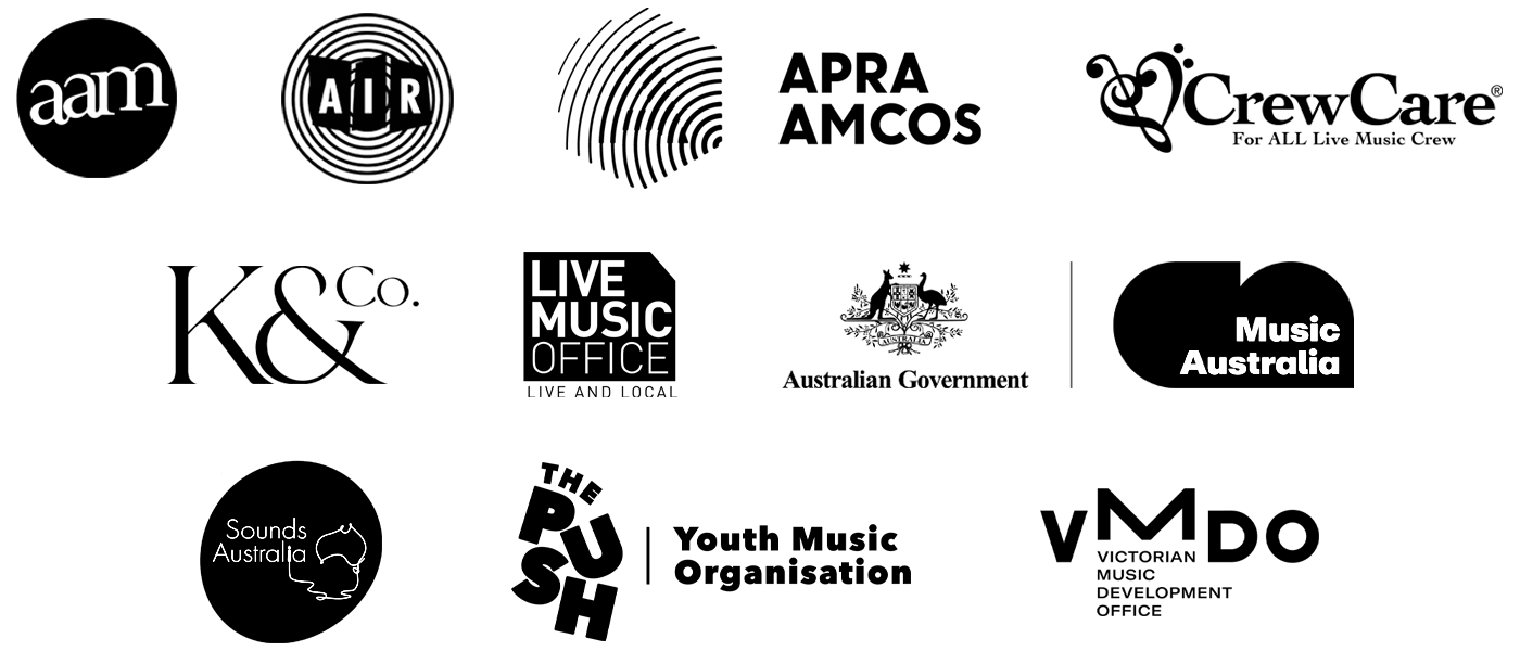 Made possible by Music Australia, it brings together music service organisations from across the country including Association of Artist Managers, AIR, APRA AMCOS, CrewCare, Kennell & Co., Live Music Office, Music Australia, Music Victoria, The Push, and VMDO.